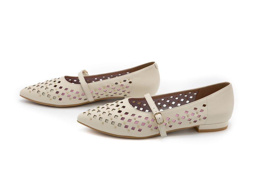 Alex Light Nude Perforated Leather
