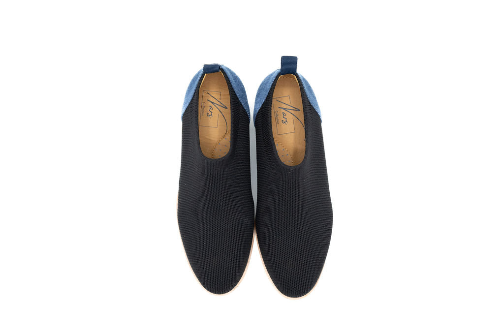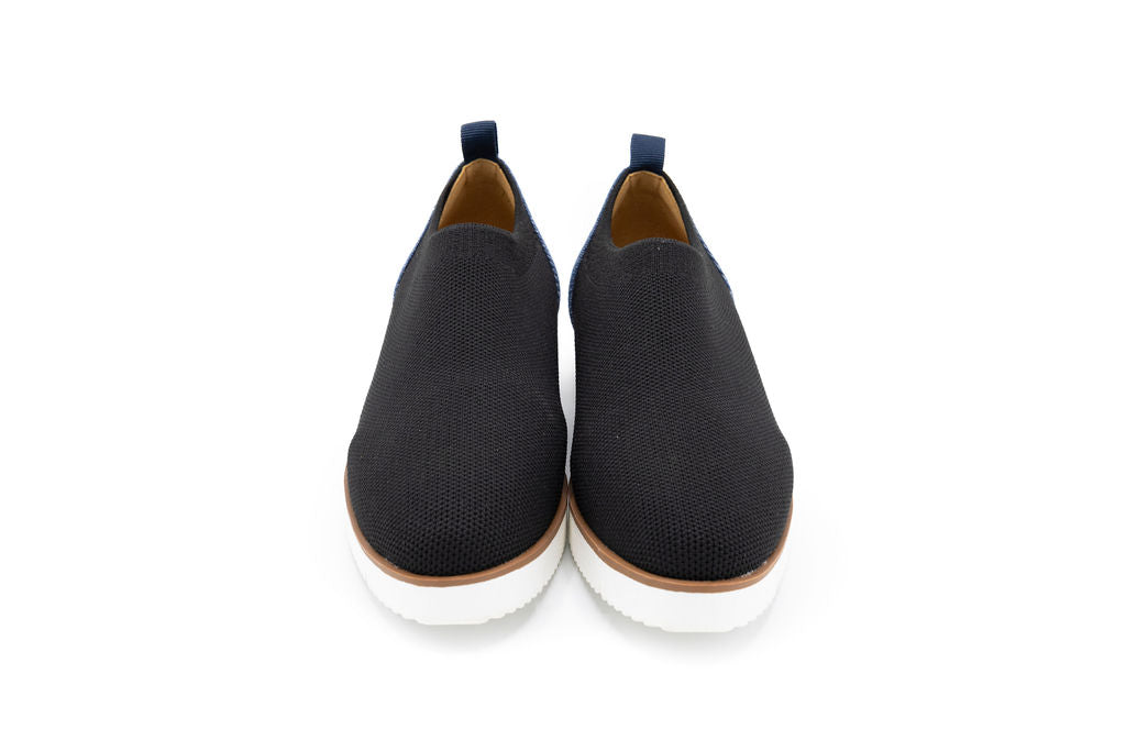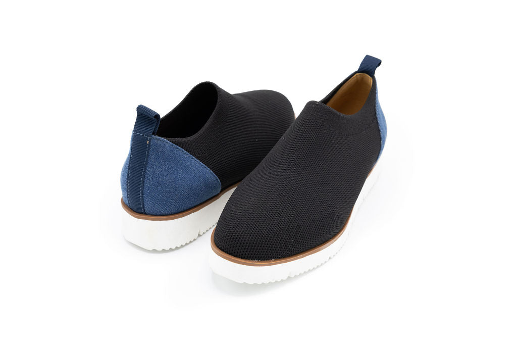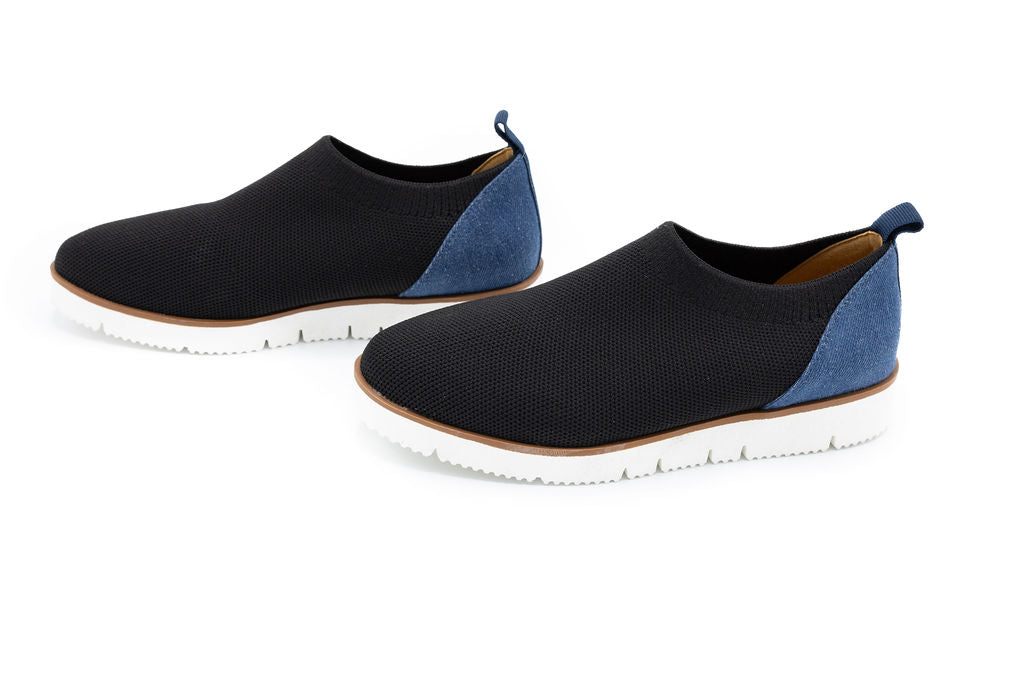 Step into effortless spring style with the Onyx Black Knit sneaker. This slip-on design features a breathable knitted upper in classic black, paired with a crisp white sole for clean contrast. The denim back panel adds texture and visual interest, making it versatile enough for casual outings or relaxed weekend wear. Lightweight and comfortable, this sneaker transitions seamlessly from day to night while keeping your look fresh and contemporary.