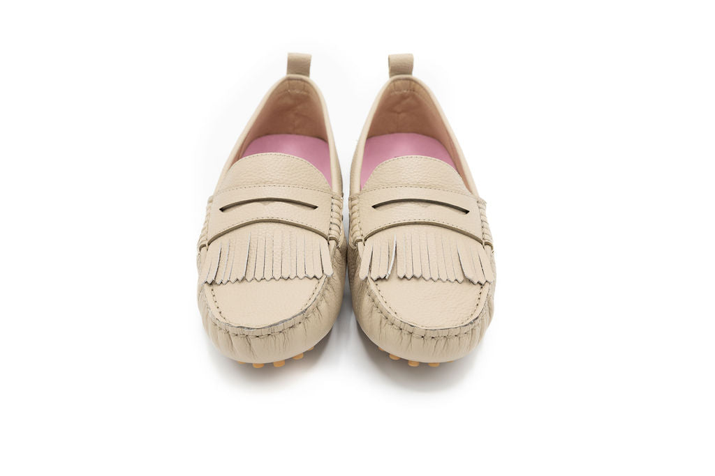 Introducing the Reggie Sand—a spring essential that brings understated elegance to your shoe collection. Crafted in a warm sand tone, this loafer showcases distinctive fringe trim along the front for a touch of personality and visual interest. The relaxed silhouette works beautifully with everything from denim to dresses, while the neutral colorway ensures it complements your existing wardrobe effortlessly. Slip into comfort and style this season.
