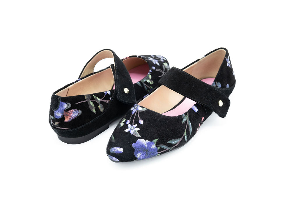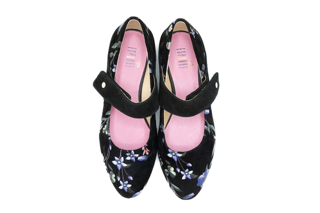Step into the season with timeless charm. Our Floral Suede High, is where vintage elegance meets autumnal flair. Crafted in soft, velvety suede, this classic silhouette features a delicate floral print inspired by the rich tones and textures of fall. The adjustable strap and cushioned insole ensure all-day comfort, while the subtle pattern adds just the right touch of seasonal sophistication. Perfect for pairing with cozy knits, tailored dresses, or flowing skirts, this Mary Jane is your go-to for effortless, transitional style.