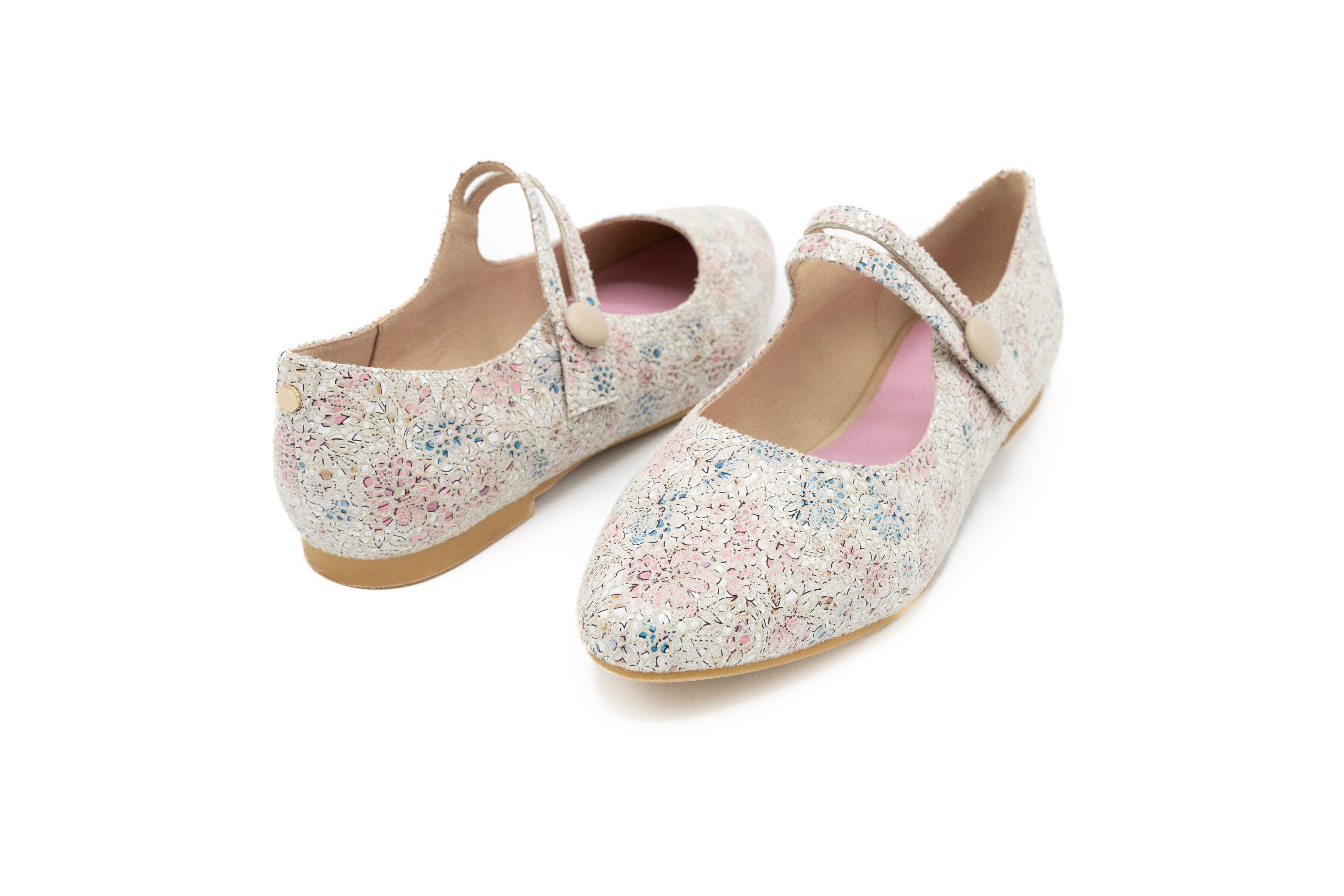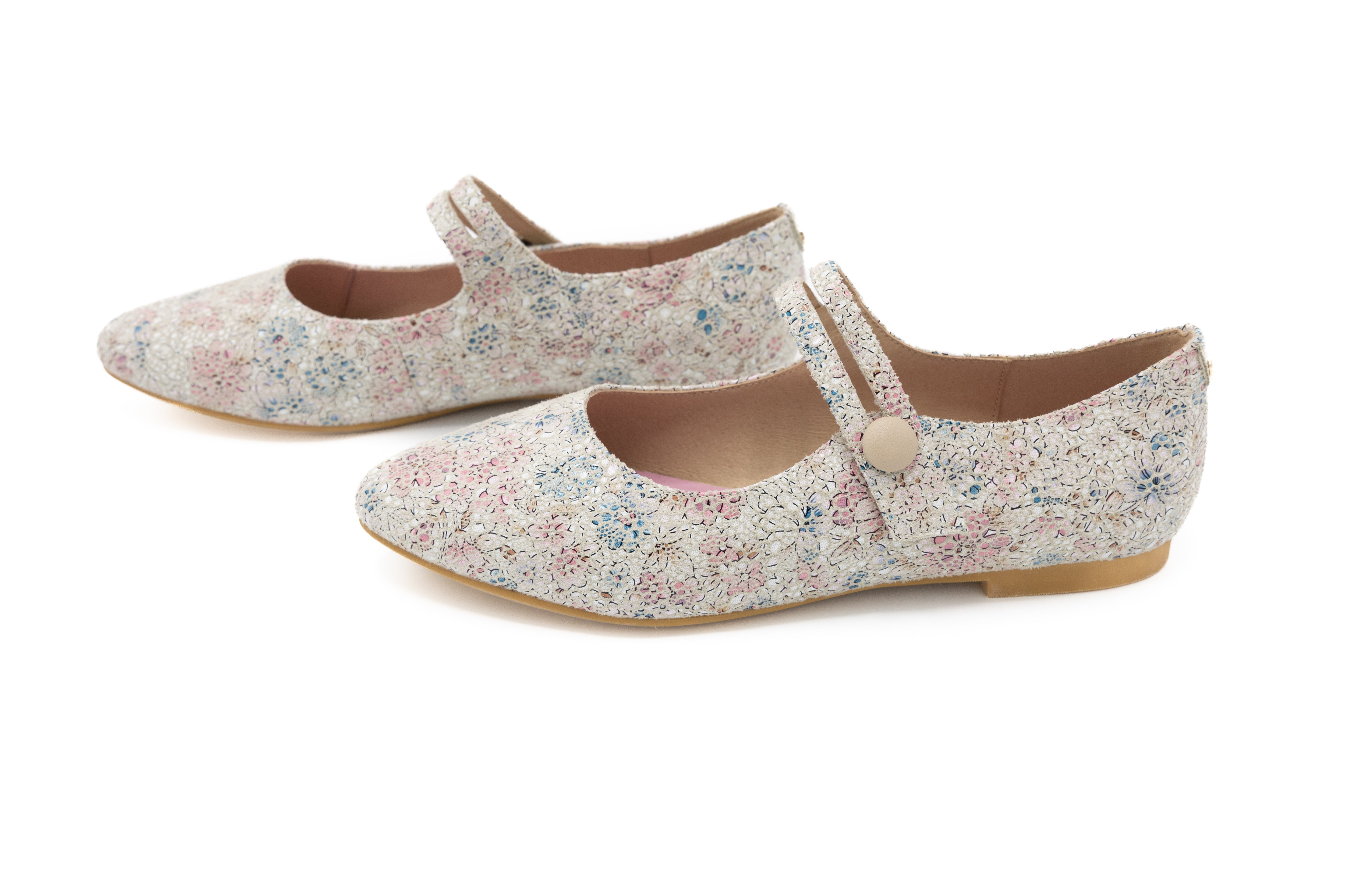 Introducing Yima, a fresh take on the classic Mary Jane for our new spring collection. Playful yet polished, this charming flat features a delicate floral print with a subtle glossy finish that catches the light beautifully—adding just the right touch of shine to your everyday look.