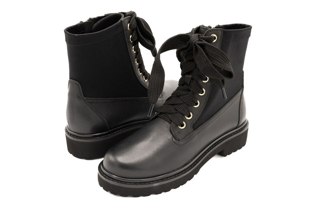 Cozy meets cool in this fall-ready Sweater-Knit & Leather Bootie. Crafted with a rich mix of textured sweater material and smooth leather, this boot delivers warmth, structure, and standout style. The lace-up front adds a classic touch, while the knit panels give it a relaxed, layered look that pairs effortlessly with Shabbos outfits or everyday wear. Whether you're heading out for a crisp walk or grabbing coffee downtown, this bootie brings both comfort and edge to every step.