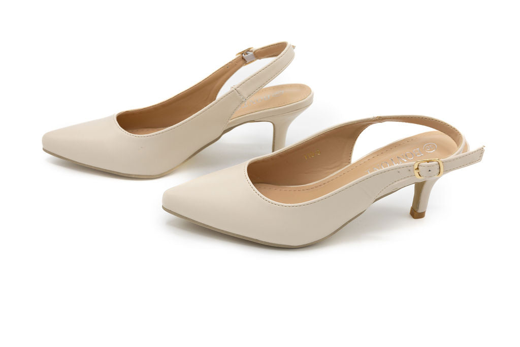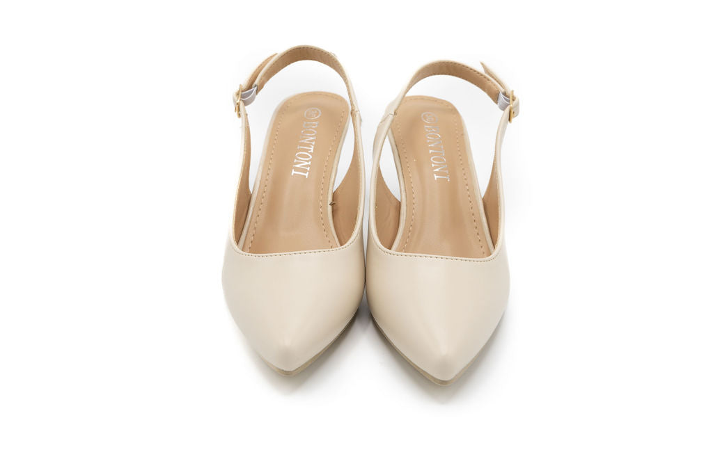 Elevate your spring wardrobe with the Sage Ivory Leather Slingback, a timeless essential that effortlessly transitions from day to night. Crafted from supple ivory leather, this slingback features a comfortable 1.5-inch heel that provides just the right lift without sacrificing all-day wearability. The adjustable sling back strap ensures a secure, customized fit, while the refined silhouette pairs beautifully with everything from flowing dresses for Shabbos to Yom Tov. Perfect for seasonal occasions, garden parties, or casual outings, this versatile shoe brings understated elegance to any spring ensemble.