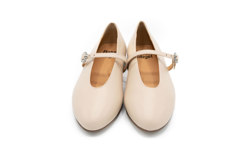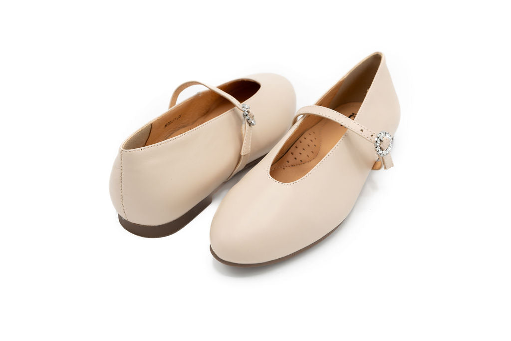 A modern twist on a timeless silhouette, our Morley flat is reimagined for the Spring Collection in a Plaster leather accented with a sparkling buckle. The iconic strap detail adds a feminine touch, while the sparkling buckle brings just the right amount of edge and sophistication. Designed to transition seamlessly from day to night, this flat pairs effortlessly with everything from skirts to dresses, making it a standout staple for the season. A perfect shoe for Yom Tov, Shabbos, and weddings.