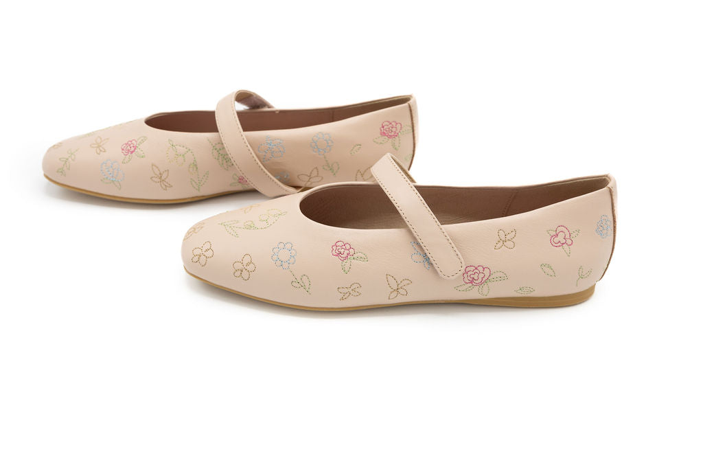 New! Step into spring with the Soft Bloom Mary Jane — a delicate blend of vintage charm and everyday comfort. Crafted in a soft blush nude tone, this flat features intricate embroidered florals in pastel hues, giving it a fresh, garden-inspired feel. The classic rounded toe keeps it timeless, while the adjustable strap adds secure, supportive comfort throughout the day.