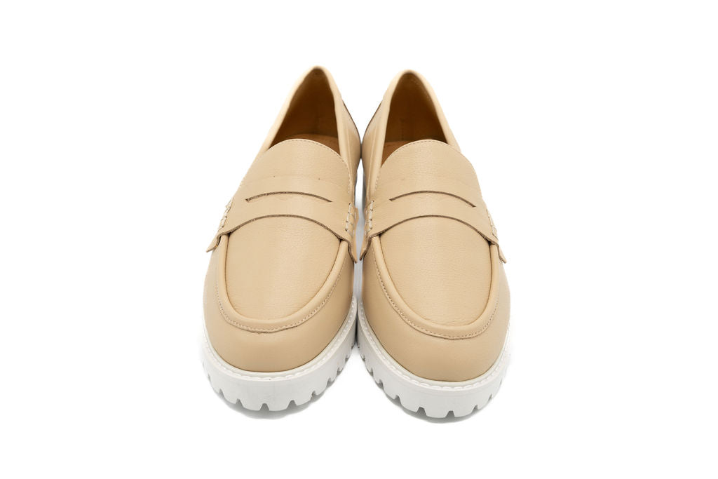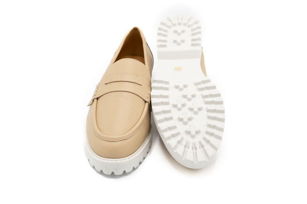Make a statement this spring with the Halo loafer. Crafted from premium nude leather with a dark nude back this chunky-soled loafer combines vintage-inspired design with modern comfort. The substantial sole provides excellent grip and durability, while the sleek silhouette works with everything from denim to dresses. Whether you're running errands or meeting friends, this versatile shoe brings an edge to your everyday rotation.