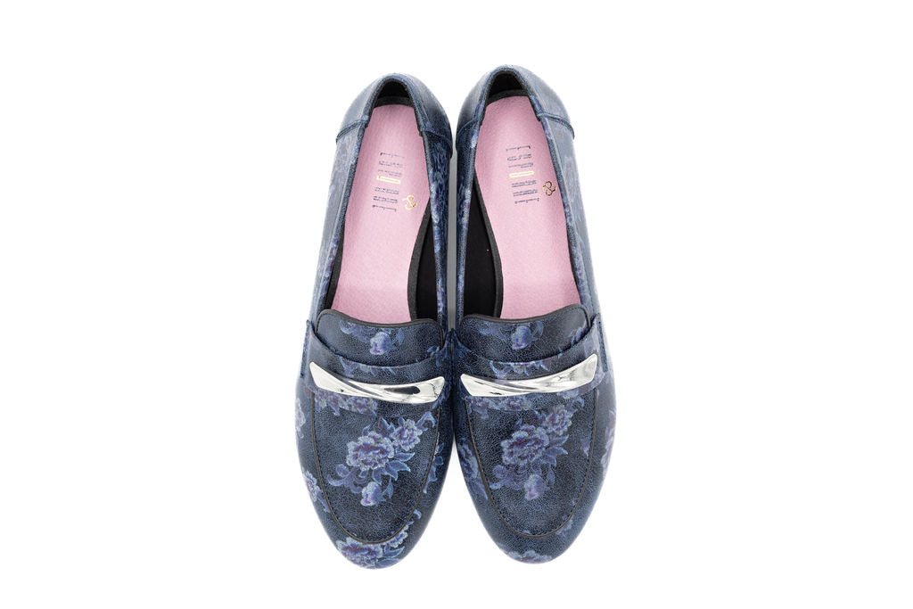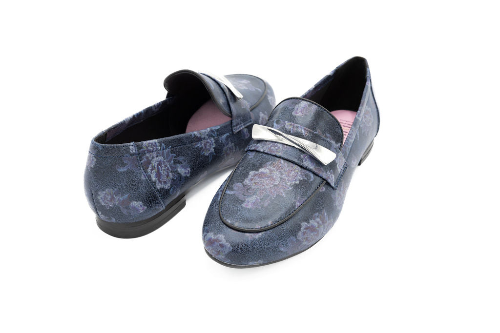 Classic meets contemporary in our Ira Loafer, designed for the Spring Collection. Crafted in soft floral print, this loafer brings seasonal texture to a timeless silhouette. A gleaming gold emblem at the front adds a refined touch, balancing everyday wearability with elevated style. Perfect for pairing with dresses, skirts, or denim, it’s a versatile flat that transitions seamlessly for everyday, Shabbos, or Yom Tov.